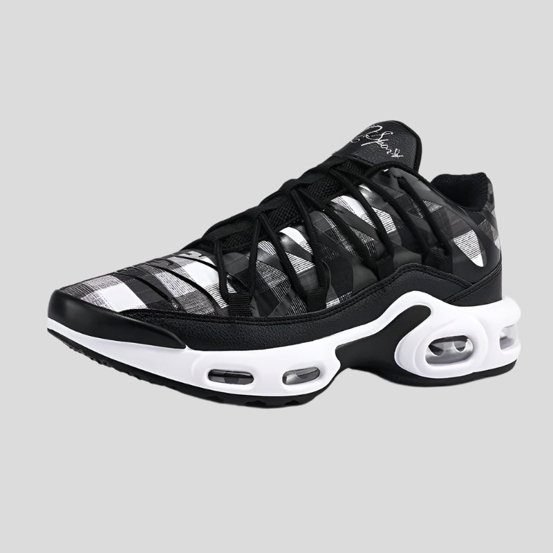 Inject heritage style into modern performance with the TartanPulse Air by Celonox. These eye-catching sneakers feature a classic red-and-black tartan textile upper, reinforced by a sleek...