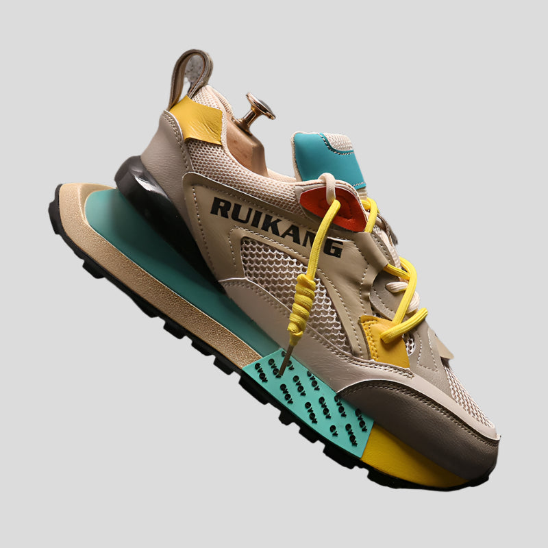 Elevate your streetwear game with the FusionWave by Ruikang—an avant-garde sneaker crafted for style, comfort, and performance. This striking color-block design pairs breathable ivory mesh panels...
