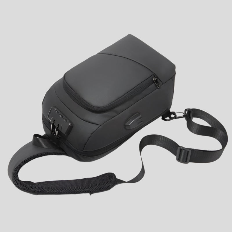 Stay secure and powered on the move with the SafeCharge Sling by Celonox—a compact crossbody pack engineered for urban adventurers. Constructed from water‑resistant nylon and slash‑proof fabric, it features an integrated three‑digit combination lock to deter pickpockets. Inside, a front organizer pocket unfolds to reveal dedicated slots for your phone, wallet, pens, and earbud case. The main compartment holds a power bank (not included) and uses an internal cable to deliver on‑the‑go charging through the external USB port. A hidden rear pocket secures your passport and cash, while the breathable, padded shoulder strap and back panel keep you comfortable all day.
