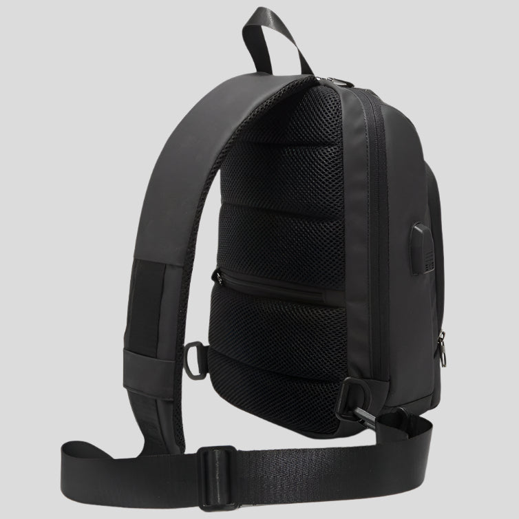 • Ergonomic Sling Strap: Padded, mesh‑lined strap with adjustable length for comfortable one‑shoulder carry