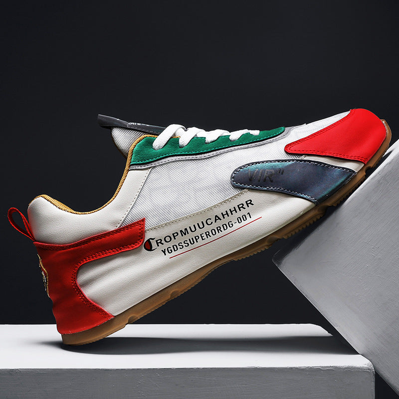 Celebrate heritage style with a modern twist in the Tricolor Sprint by Celonox. These eye-catching sneakers blend a lightweight white mesh base with bold red toe caps, emerald green eyestays, and iridescent blue mid-panel accents. The gum rubber outsole and cushioned midsole deliver everyday comfort and reliable traction, while branded graphic details add a fashion-forward edge.